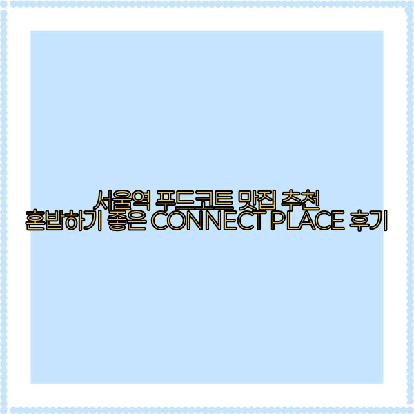 서울역에서 KTX, 기차 환승 시간이 길어 혼밥할 곳을 찾고 계신가요? 서울역 푸드코트, CONNECT PLACE를 강력 추천합니다! 다양한 맛집과 편리한 시설, 혼밥족을 위한 배려까지 갖춘 CONNECT PLACE 후기와 꿀팁 대방출! 서울역 맛집, 혼밥 맛집, 서울역 푸드코트, CONNECT PLACE, 혼밥하기 좋은 곳 등의 키워드로 최고의 혼밥 경험을 선사합니다.